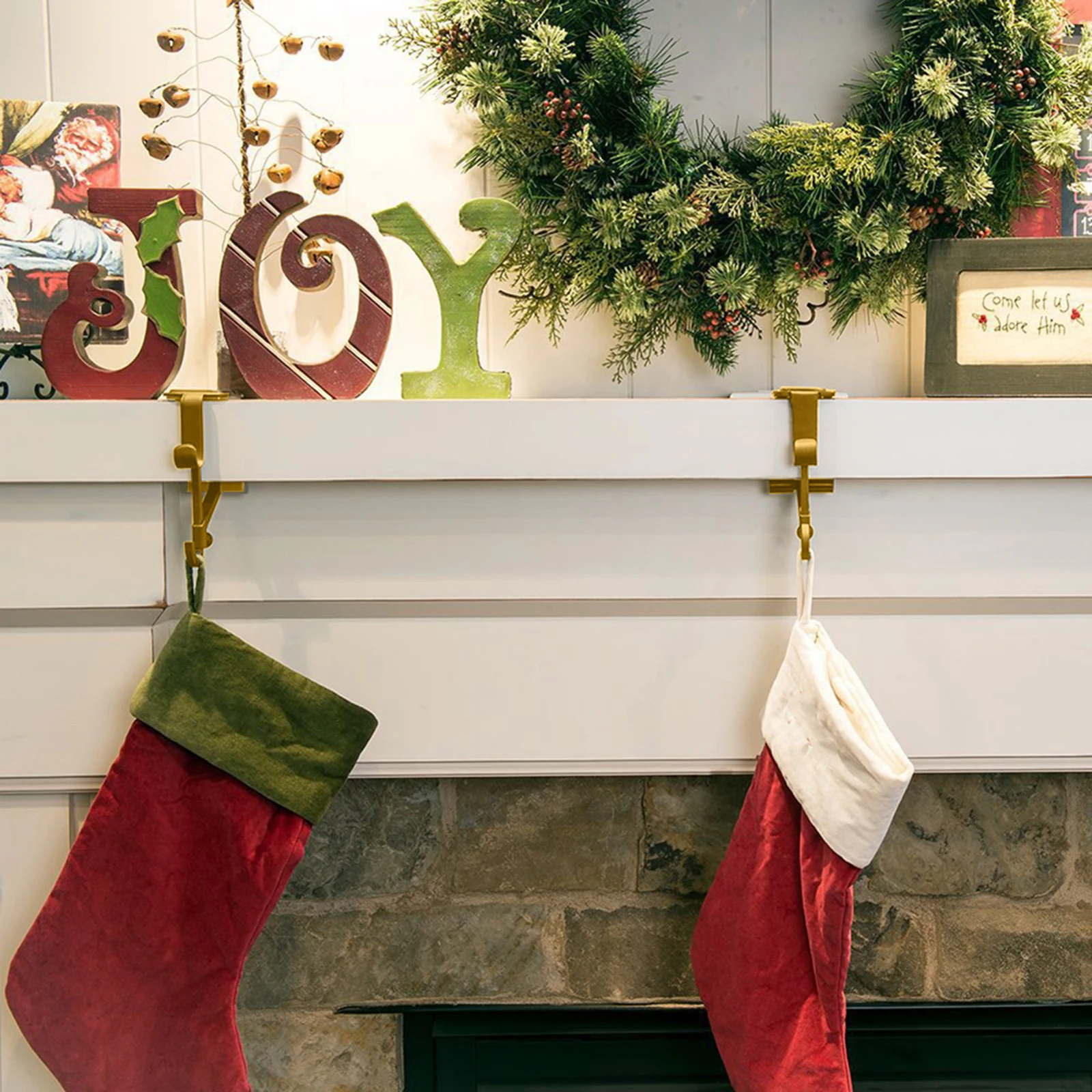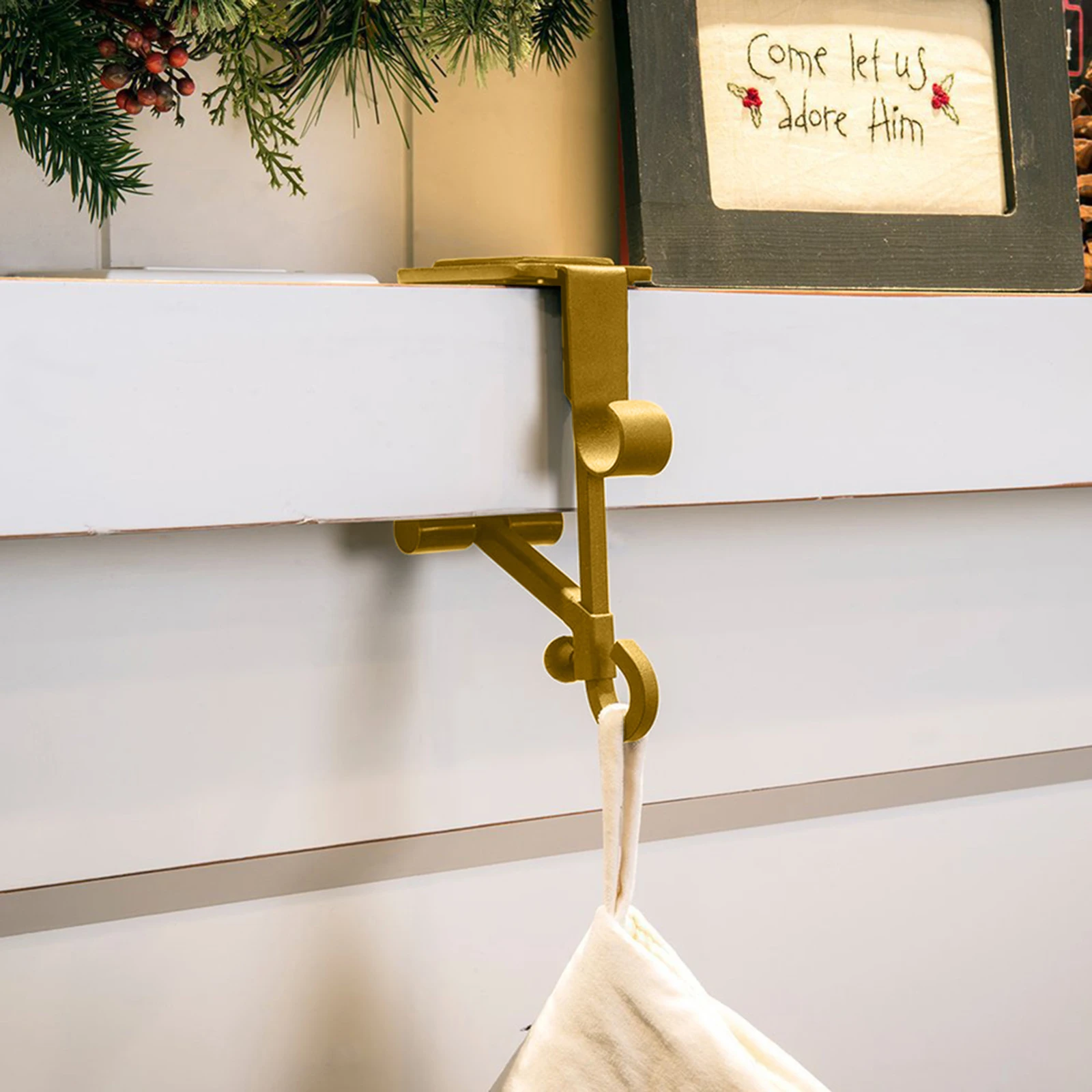 Fireplace Stocking Hanger 2 in 1 Small Garland Holder Multi-Purpose Double Mantel Hangers for Christmas Wreath Vine Desk
